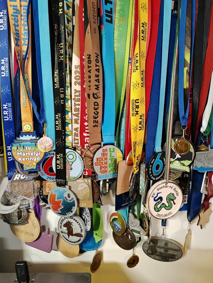 Visszabattyogtunk átvenni az érmet, leülni kicsit, de nekem az össze vissza frissítéstől minden bajom is volt, a lábaim égtek mint a fos, a fejem tiszta volt, a gyomrom se fájt, de tudtam jól, hogy ezt úgy basztam el ahogy illik, csak emiatt a lassú baszakodás miatt volt, hogy az alacsonyabb pulzussal a szervezet tudott kivenni még annyi energiát ami kell neki… Közben pedig, elöntött az a kellemes érzés, hogy most egy jó időre megszabadulok ettől vagy az is lehet hogy örökre. 12 éve kezdtem el, rengeteg dolgot átéltem, mindenhol kipróbáltam magam a magam módján, a rövideken át a 24 órás versenyig, futottam 4 napig a Balaton körül, teljesítettem 100+ km-es versenyt szintidőn belül, körözgettem a helyi Spar maratonon a parkolóban 120 kört, amíg el nem értük a maratoni távot, futottam 12 órát 5 fokban, esőben, szélben, 65 km-t a Tisza tó gátján 40 fokban árnyék nélkül, sose voltam 100 kiló alatt, de lettem második félmaratonon és az utóbbi 7 évben én voltam a „papucsos hülye” a versenyeken.